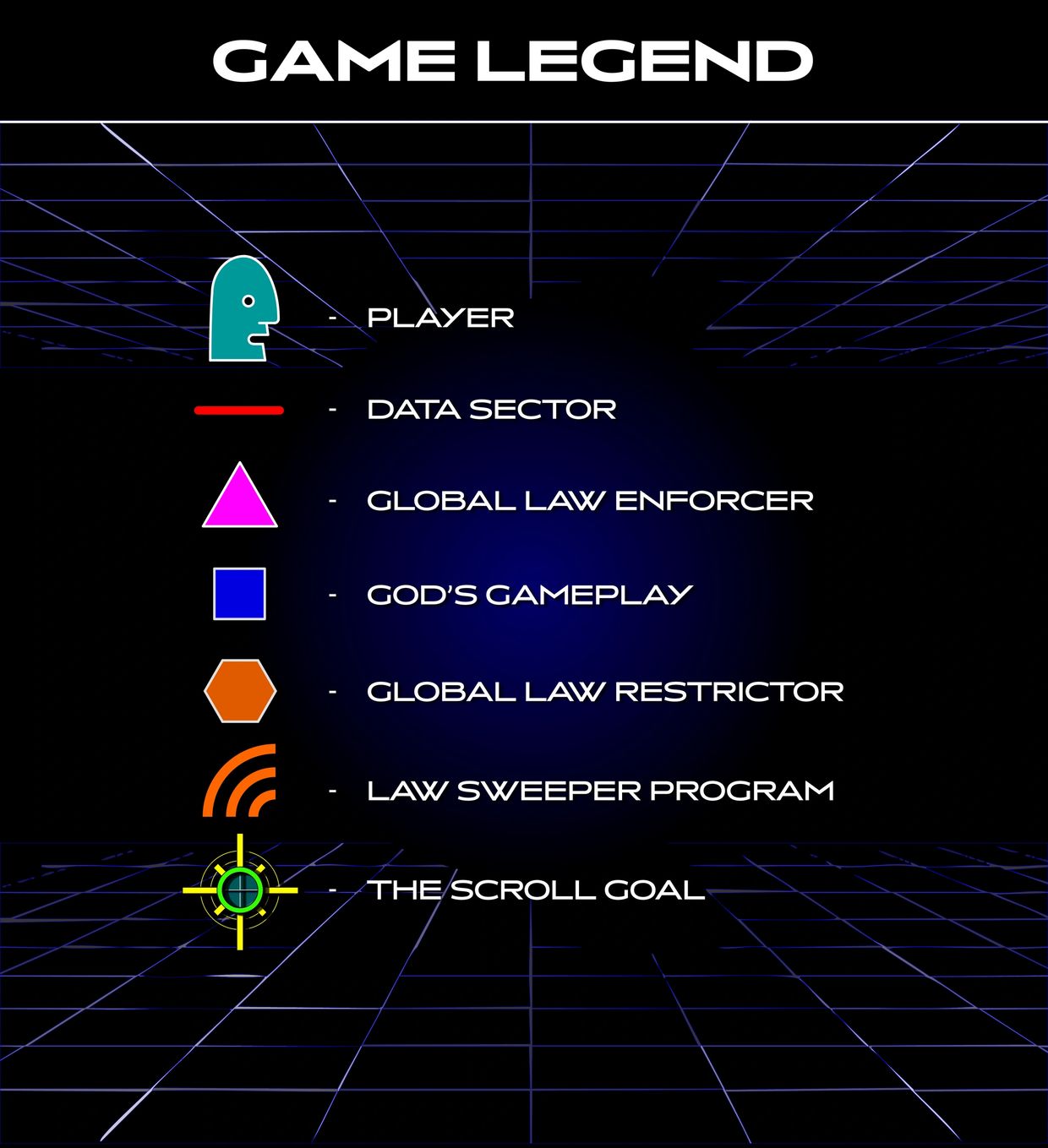 The GLOBAL LAW RESTRICTOR is the most powerful data filter operating on the grid. Its Law Sweeper program is a vital tool for computing sensible laws for effective gameplay.